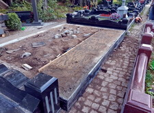 После того, как работа была проведена, клиент посчитал, что в задней части места захоронения требуется дополнительное укрепление. Мы вкрутили пять дополнительных свай, сварили новую сетку и залили ещё одну площадку, которая будет являться основанием для памятников.